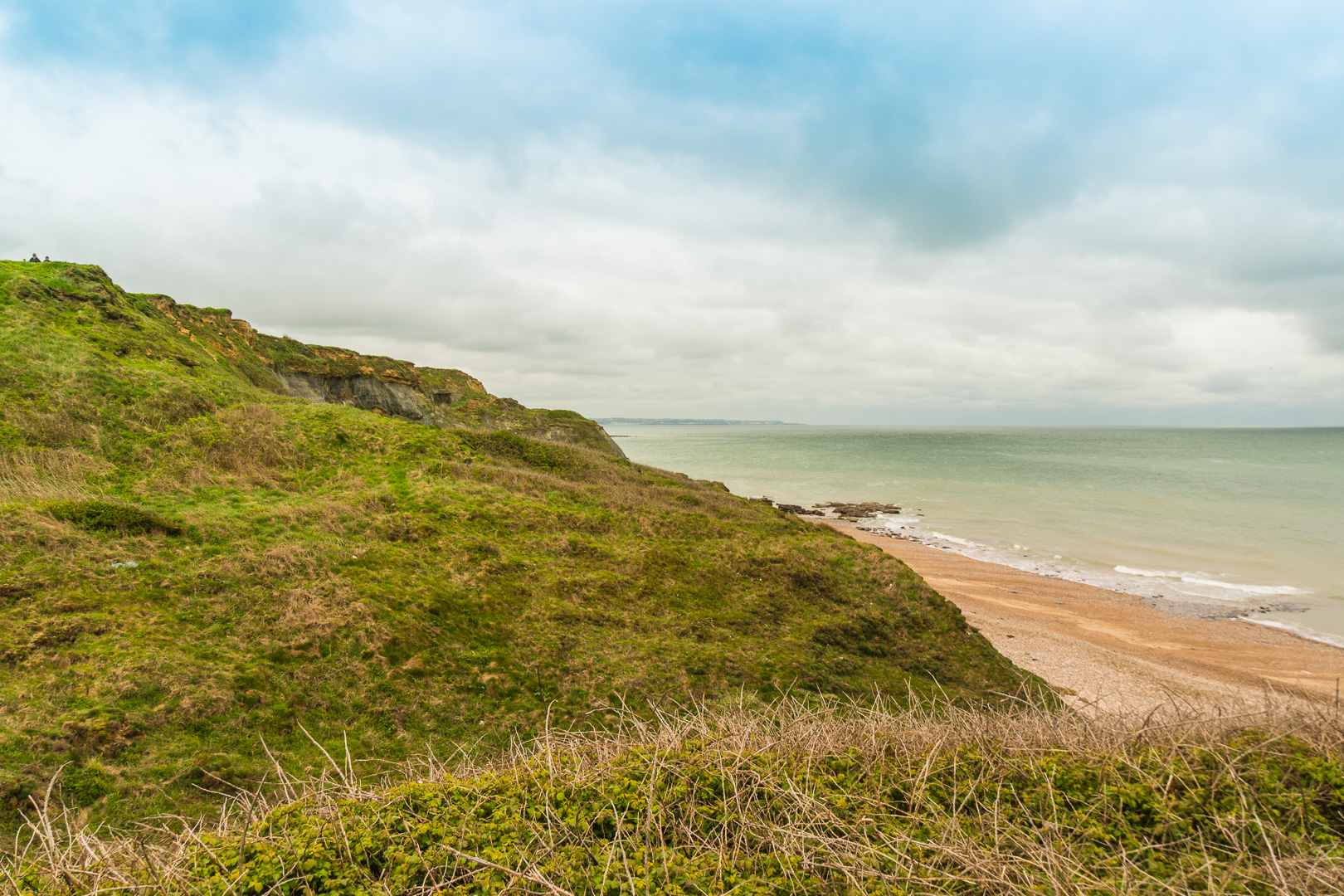 England scheint zum Greifen nah. Während der Anfahrt und zu Beginn der heutigen Wanderung können wir die Kreidefelsen von Dover auf der anderen Seite des Ärmelkanals im Dunst ansatzweise erkennen. Im Laufe des Vormittags verschlechtert sich leider die Sicht.
