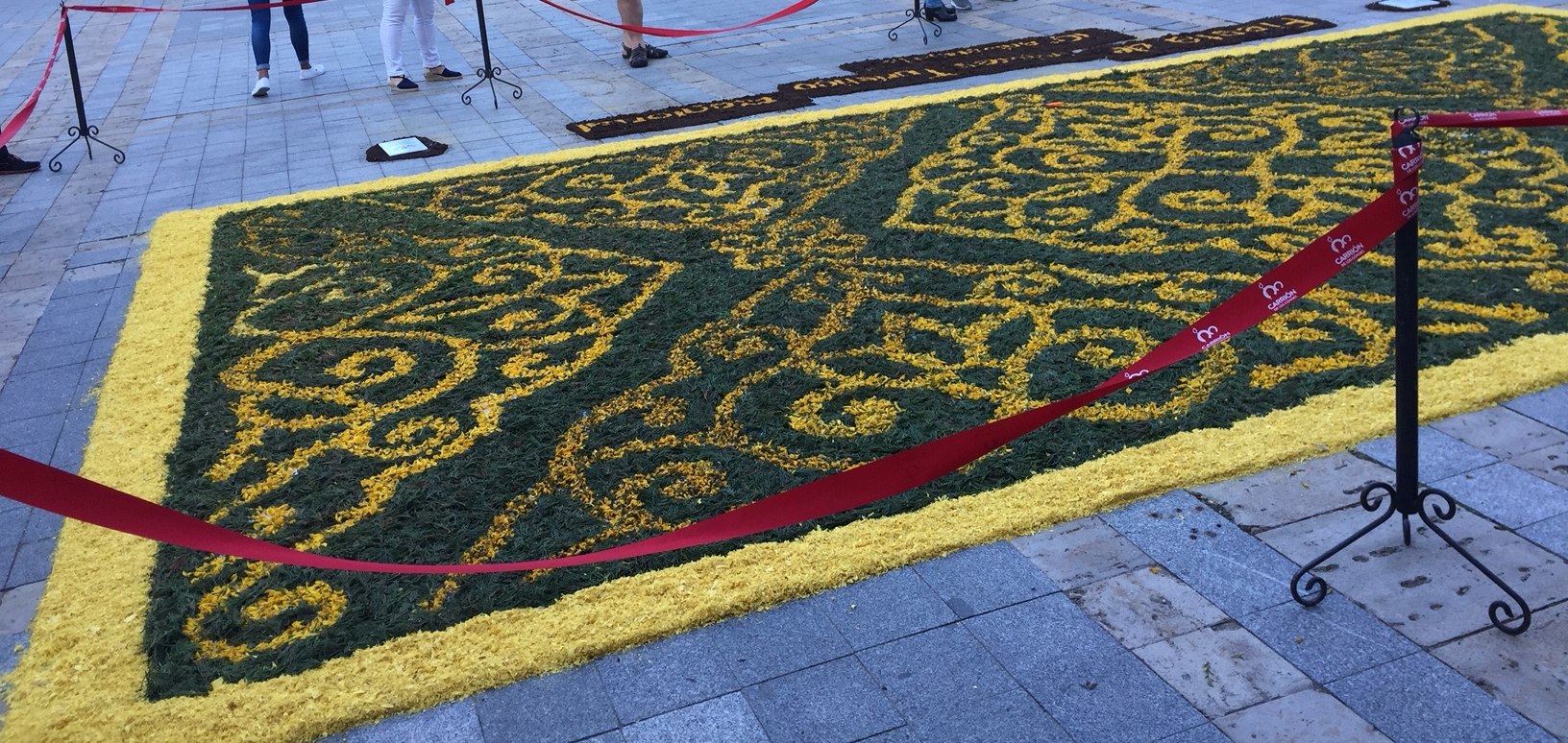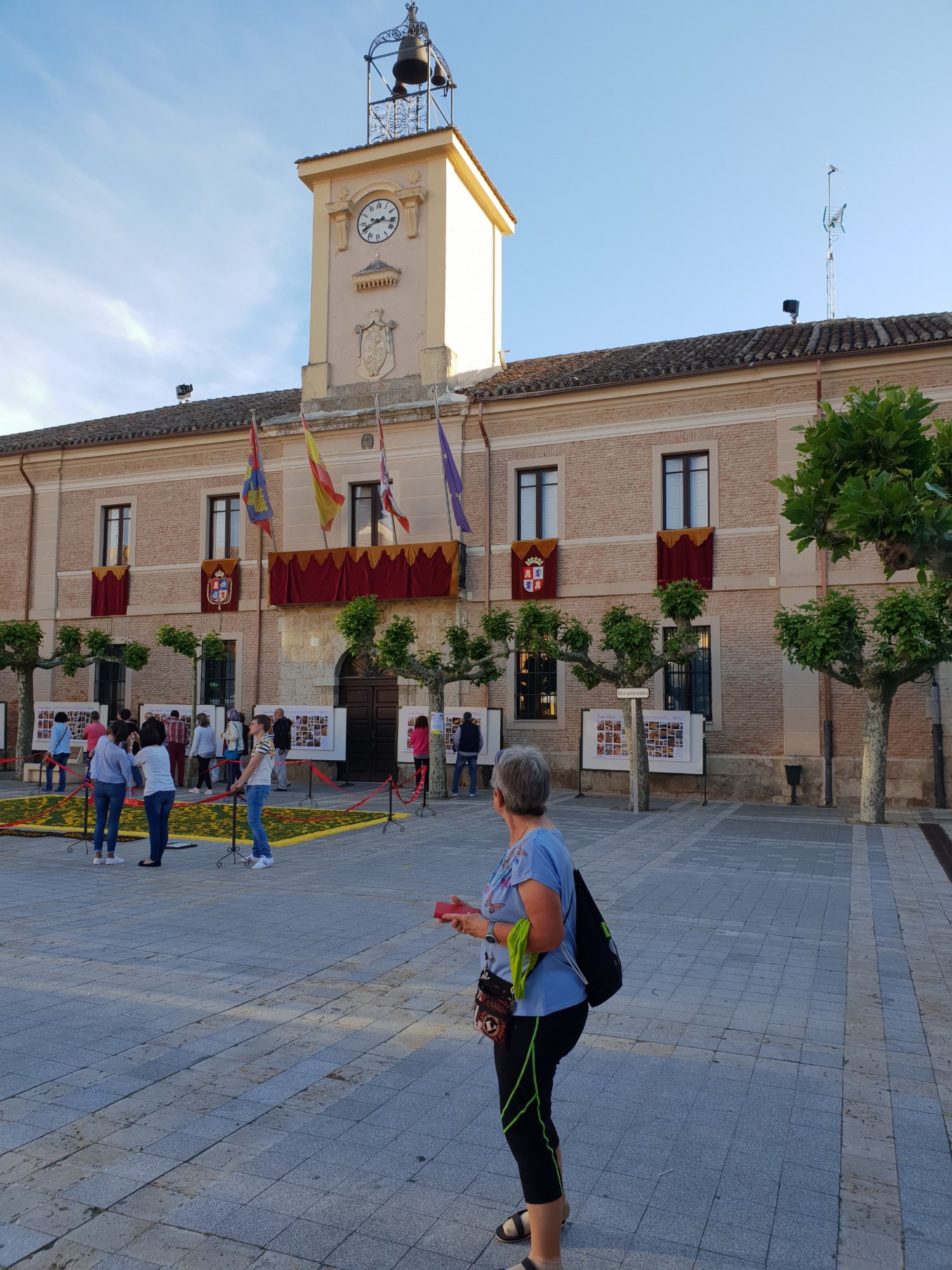 Zum Abendessen gehen wir in den Ort, der sich auf das morgige Blumenfest vorbereitet. In den Cafés auf dem Platz vor dem Rathaus herrscht eine lockere Stimmung. Einheimische und Pilger genießen den Samstagabend.