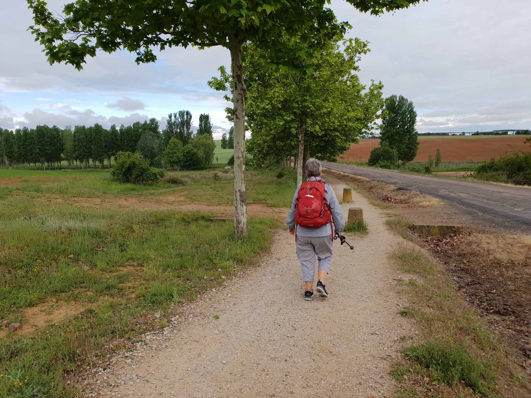 Kurz nach Bercianos del REAL CAMINO holen wir dann doch die Regenjacken raus. Aber genau wie in den letzten Tagen fallen auf unserem Weg nur ein paar Tropfen. An der nächsten Anhöhe packen wir die Jacken wieder in den Rucksack, da die Sonne scheint.