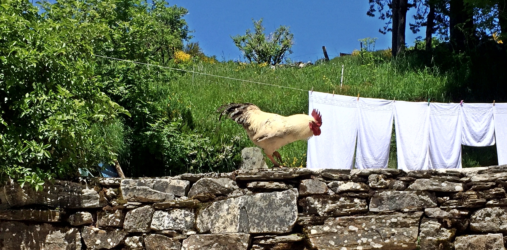 Sehr entspannt geht es dagegen an unserem heutigen Tagesziel, dem kleinen Ort Fonfria zu. Hier wohnen weniger als 50 Menschen. Es geht entspannt und gelassen zu und trotzdem funktioniert alles ohne Hektik. Sofern einen der Stallgeruch der benachbarten Kuhställe nicht stört – eine wahre Idylle. Sogar ein stolzer galicischer Hahn mit seinem Haarem gibt uns die Ehre und besucht uns auf der Terrasse der Herberge.