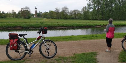 Wir schliessen unsere Fahrräder an und checken automatisch ein. Später besorge ich noch ein zusätzliches Faltschloss. Die Unterkunft im historischen Haus hat keinen Fahrradunterstand liegt aber optimal. Wir essen nebenan, da das Restaurant im Haus unserer Unterkunft heute Ruhetag hat. Das Wetter ist noch schön und viele Menschen, Einheimische, Touristen und Studenten bevölkern die Restaurants, Kneipen, Cafés und Biergärten rings um uns herum.